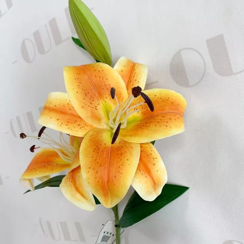 Como uma marca com foco na exportação de flores artificiais, a Ouli® está comprometida em fornecer aos clientes globais arte decorativa de flores que combinam beleza e qualidade. Este Lily Fake PU usa uma combinação de PU suave e pano de seda de alta simulação, com galhos retos e flores cheias e naturais. O comprimento de um único ramo é de 90 cm, contendo 2 flores totalmente florescentes e 1 broto, que é um item ideal para a decoração doméstica moderna e o fundo de casamento. Esta Lily PU Fake passou certificações internacionais como CE/UKCA/ROHS e é adequada para decoração interna de longo prazo.