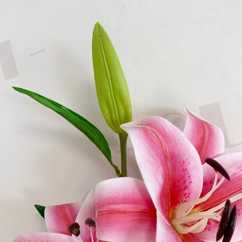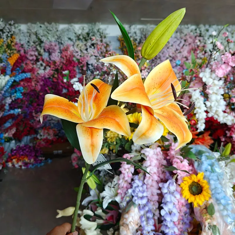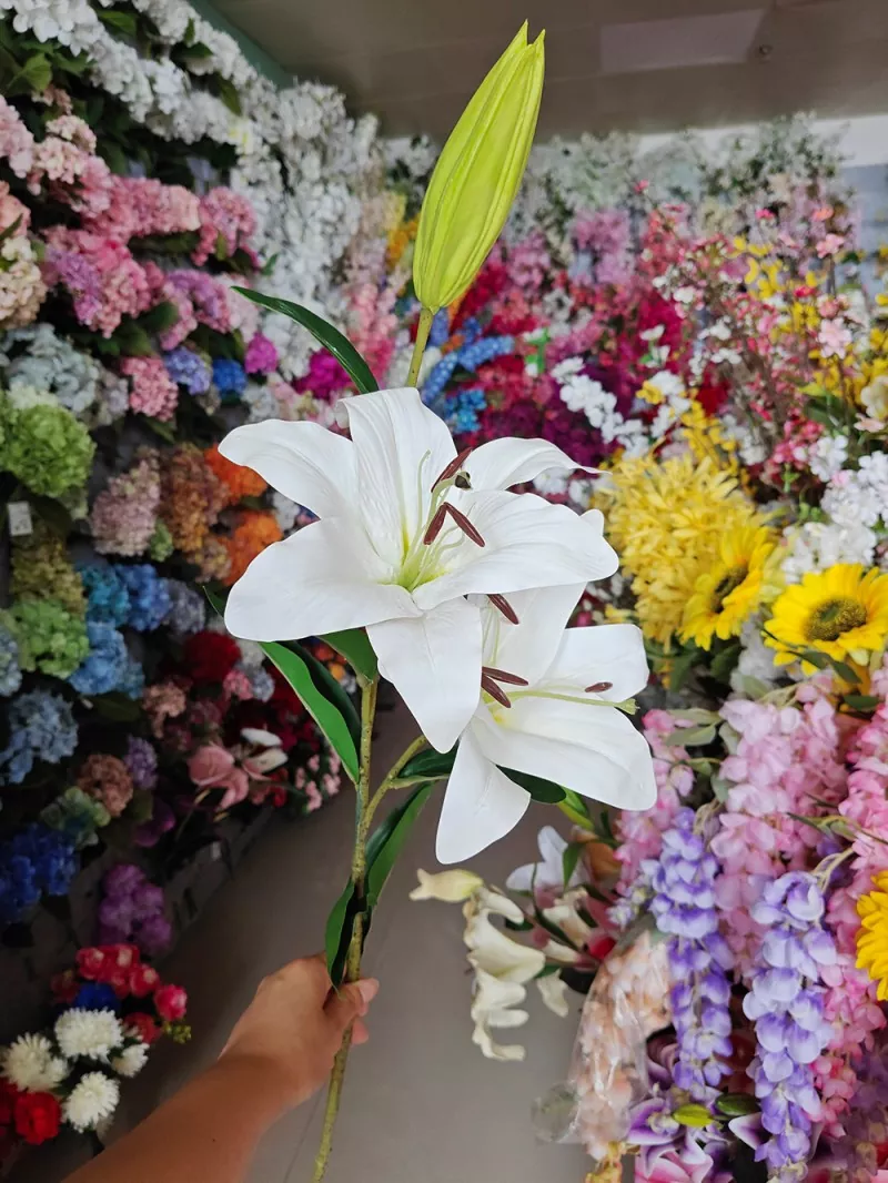 Ao escolher flores artificiais para arranjos de casamento, mais e mais casais estão começando a preferir o PU Fake Lily, que é altamente realista e moderno. Comparado com flores de plástico tradicionais, a PU é macia e natural e parece pétalas reais, o que é particularmente adequado para o lírio artificial para arco de casamento, peças centrais de mesa ou cenário de flores modernas e outras cenas de alta demanda.
